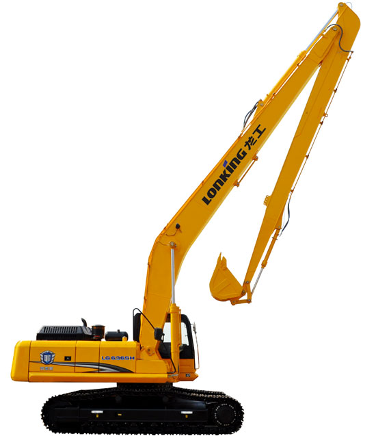 超長臂挖掘機(jī),特點是挖掘力較小,宜配較小容量的鏟斗,優(yōu)點是擴(kuò)大挖掘范圍。因此超長臂挖掘機(jī)主要用于疏浚河道、清理淤泥、河沙、碎石、拆除高層建筑物等,面對各種惡劣工況均能發(fā)揮超長臂的威力。特別是因自然災(zāi)害造成的泥石流滑坡引起的河流堵塞的挖掘、清理和疏浚工作以及長距離、更大深度的搬運土方、砂土、碎石等工作。